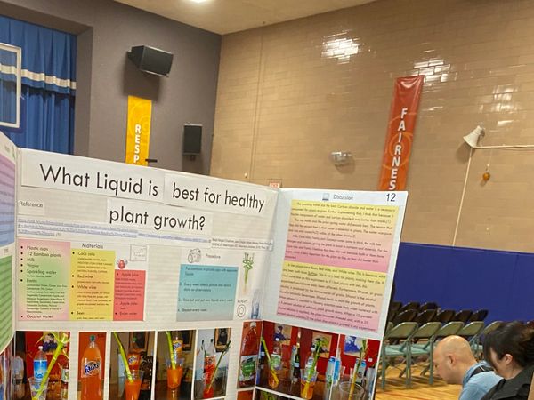2nd place- Olivia Huang -" How do different solutions affect the growth of bean plants?"